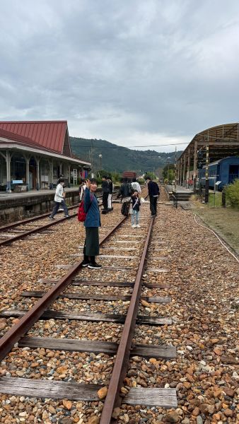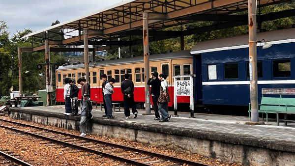 学生が撮った写真の中には思わず「センスあるな」と感じる一枚も。 線路上でグリコポーズをしたり、駅跡で自由に撮影したりと、思い思いに楽しみました。 保存車両の車内は、まるで無限列車のような雰囲気で、どこか懐かしく味わい深い時間でした。