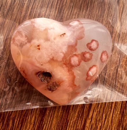 SiO₂微結晶の集合体で、結晶粒界に他の鉱物が入ることで独特の模様が生まれます。 クリストバライトを内包して桜の花のように見えるこの石は、八重桜のような表情をしており、 「インクルージョンの美」を感じさせる一品でした(マダガスカル産)。